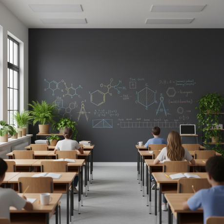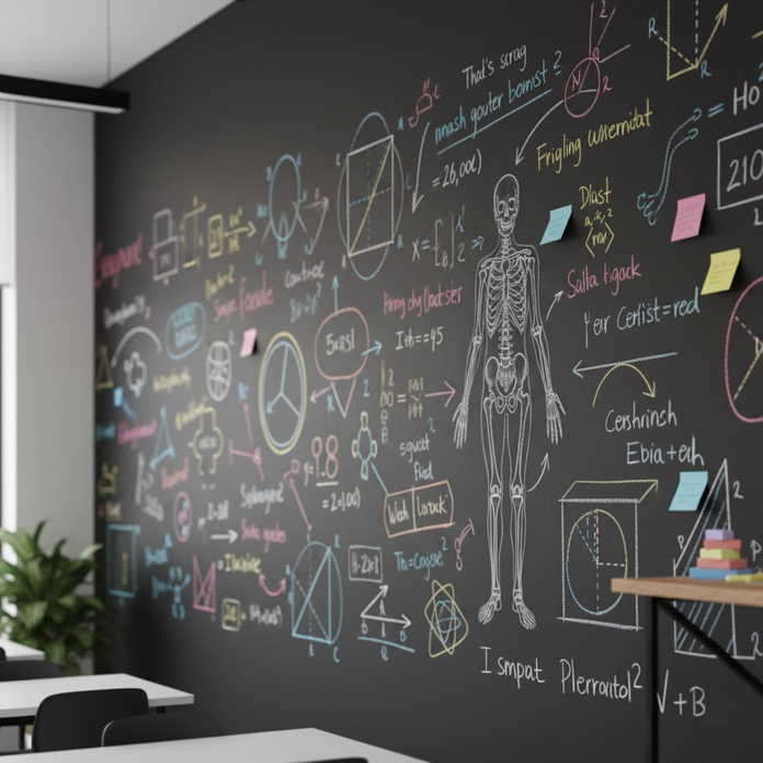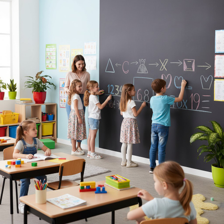 Любая стена превращается в интерактивное пространство: рисуйте мелом, делайте заметки и крепите учебные материалы магнитами.