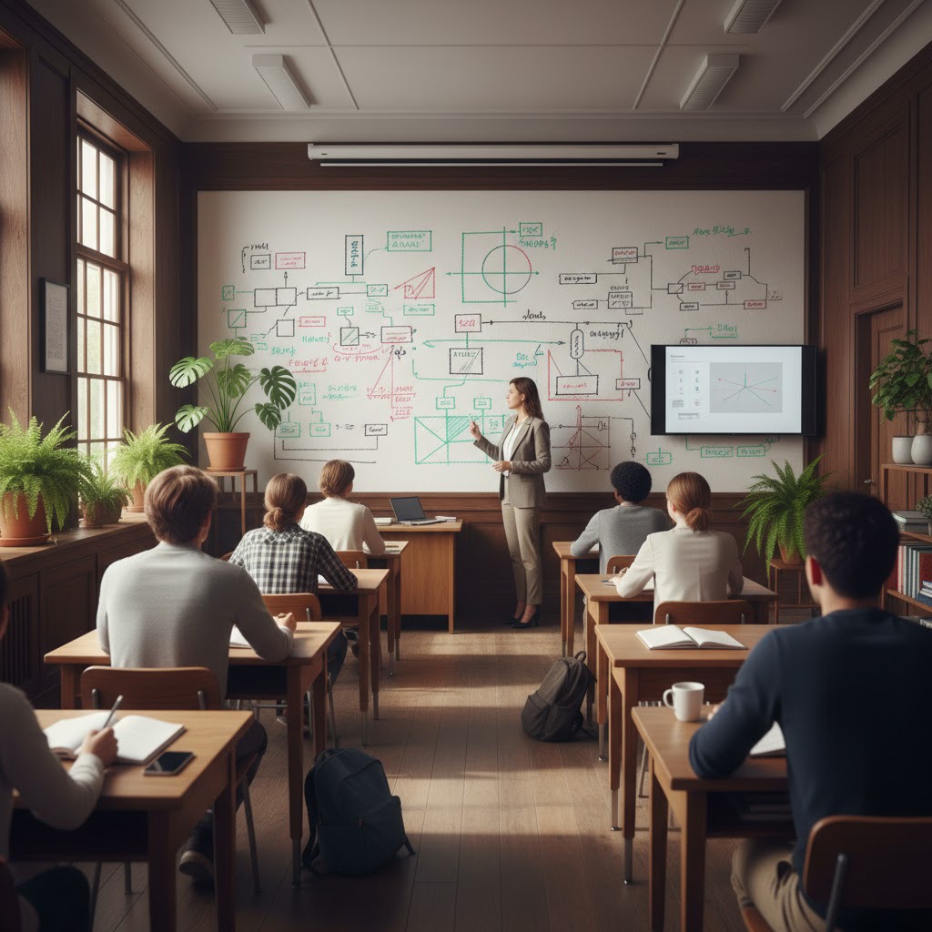 1. Интерактивность — каждая стена или панель становится доской для заметок, рисунков, схем и упражнений.