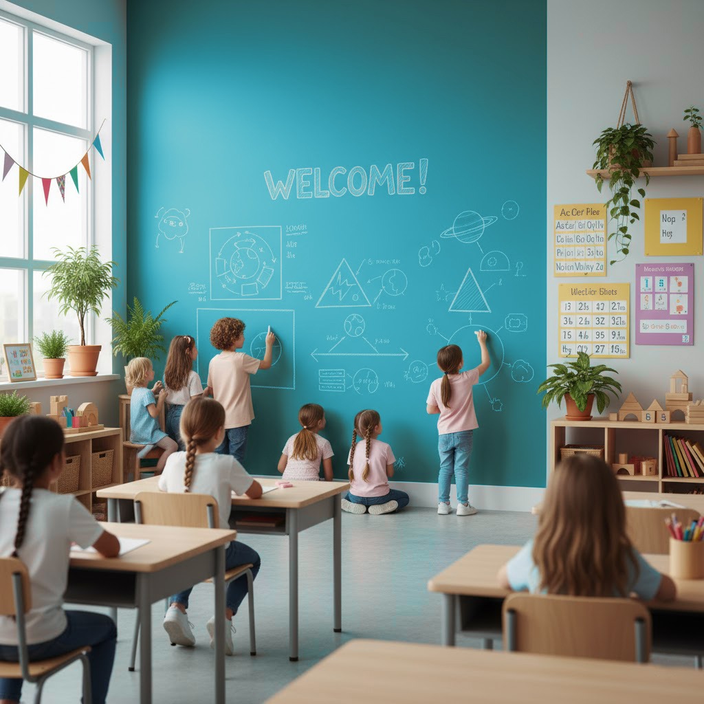 С Siberia Kraft обычные стены, мебель и учебные поверхности превращаются в интерактивные доски, на которых можно рисовать мелом, делать заметки и планировать уроки. Краска идеально подходит для школ, классов, детских садов, студий и лабораторий, создавая удобные, функциональные и интерактивные пространства для обучения.