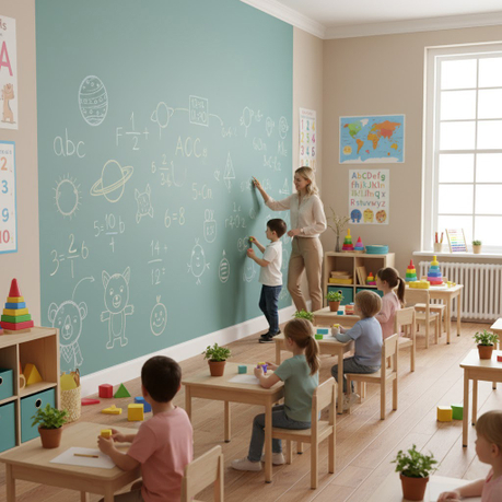 С Siberia Kraft обычные стены, мебель и учебные поверхности превращаются в интерактивные доски, на которых можно рисовать мелом, делать заметки и планировать уроки. Краска идеально подходит для школ, классов, детских садов, студий и лабораторий, создавая удобные, функциональные и интерактивные пространства для обучения.