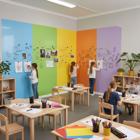 Использование магнитной шпаклевки позволяет школам и учителям создавать интерактивные и функциональные учебные пространства, улучшая визуализацию материалов и вовлечённость учеников.